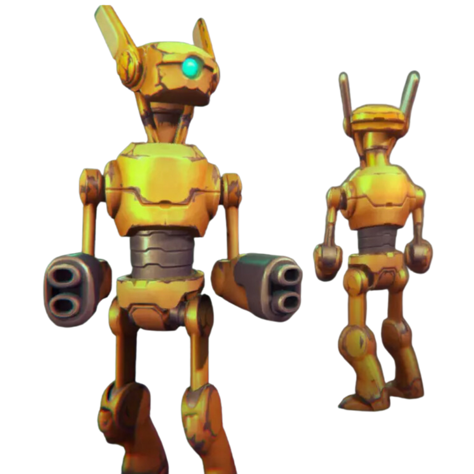 The Gleaming Bot with Enchanting Green Eyes! Adorned in radiant gold and equipped with arms resembling emerald vines, Gilded Emerald gracefully glides through the digital world, casting a captivating spell on all who cross paths with this charming bot! ✨🌿🤖